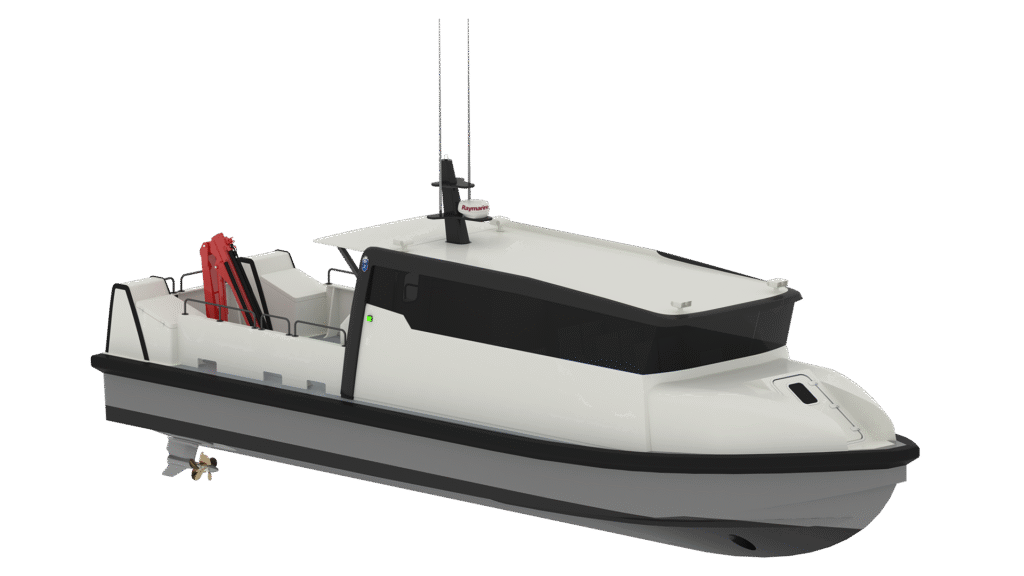 The 15-meter DCW is a light and fast vessel specifically designed for transporting personnel. The cabin is constructed to accommodate 2 crew members plus 12 additional passengers and is fitted with pantries. The aft deck is designed to function as an expanded workplace with a wide door in the back of the cabin for loading and unloading of larger cargo. In addition to transporting personnel, the vessel can perform a variety of tasks with the help of a 3 tons-meter crane. The hull is based on proven technology and designed and built to the highest offshore specifications. The hull is made in a sandwich configuration with PVC core material. The core material acts as a thermal insulator which increases the overall crew comfort onboard the vessel. The integrated design of the vessel’s fender and fore cabin gives crew members and passengers easy access to all areas of the vessel, either by walking on the wide fender or by using the door in the fore cabin. The 15-meter DCW can be tailored to satisfy any customer requirement.