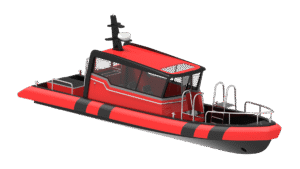The boat is made of a combination of glass and carbon fibre as a sandwich construction with PVC as core material. This core material act as a natural buoyancy reserve material, due to its lightweight and zero waterabsorption. Moreover, the sandwich construction avoids the use of internal stiffeners, increasing the usable internal space and offers a natural insulation capability, improving the comfort in the cabin and manned compartments.